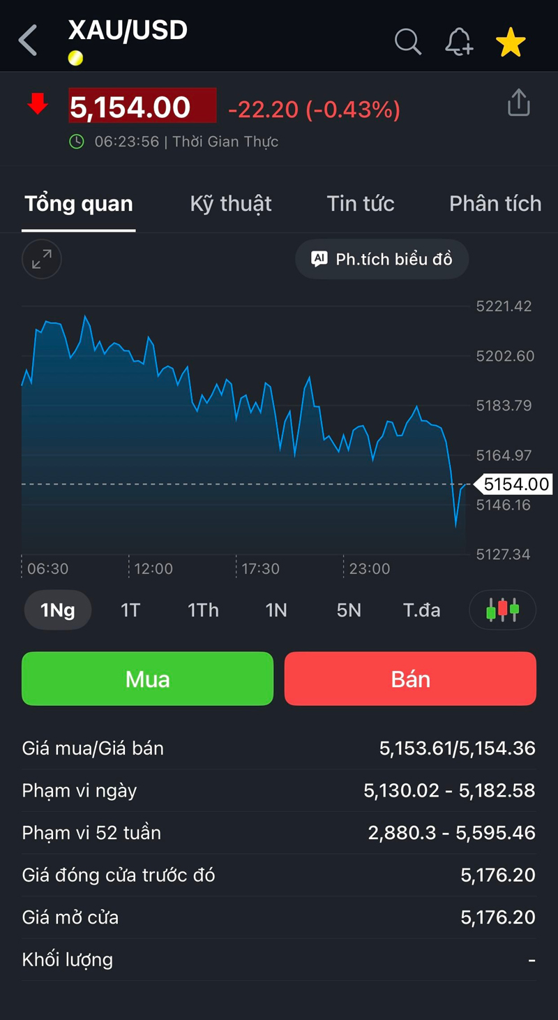 Theo số liệu từ Trading Economics và Kitco, giá vàng đã giảm khoảng 36 USD/ounce, tương đương mức giảm 0,69% trong vòng 24 giờ.